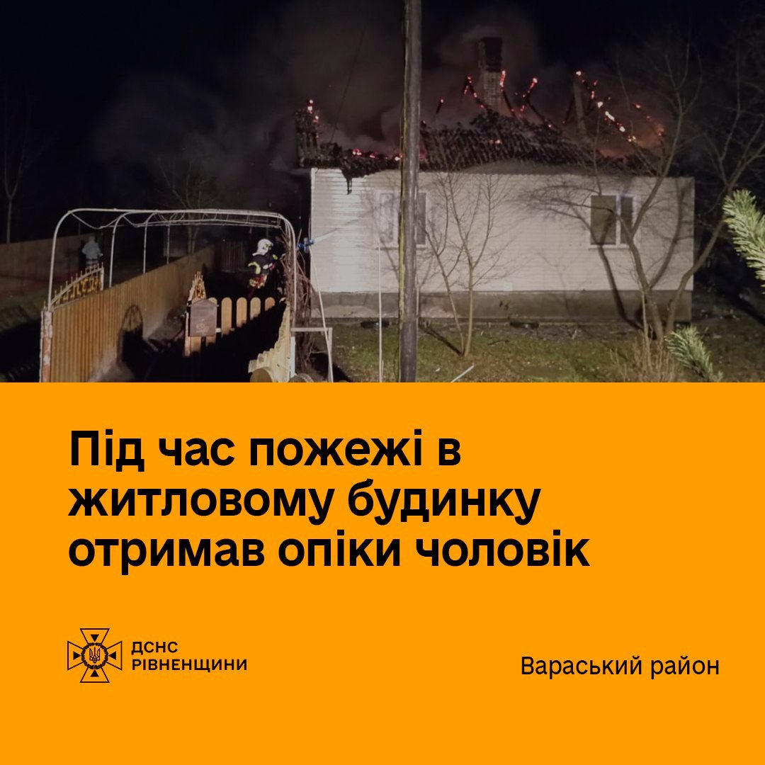 Сьогодні близько 03:23, у селі Чучеве Рафалівської територіальної громади сталася пожежа в житловому будинку, під час якої постраждав власник оселі. Про це повідомили у Головному управлінні ДСНС у Рівненській області.…