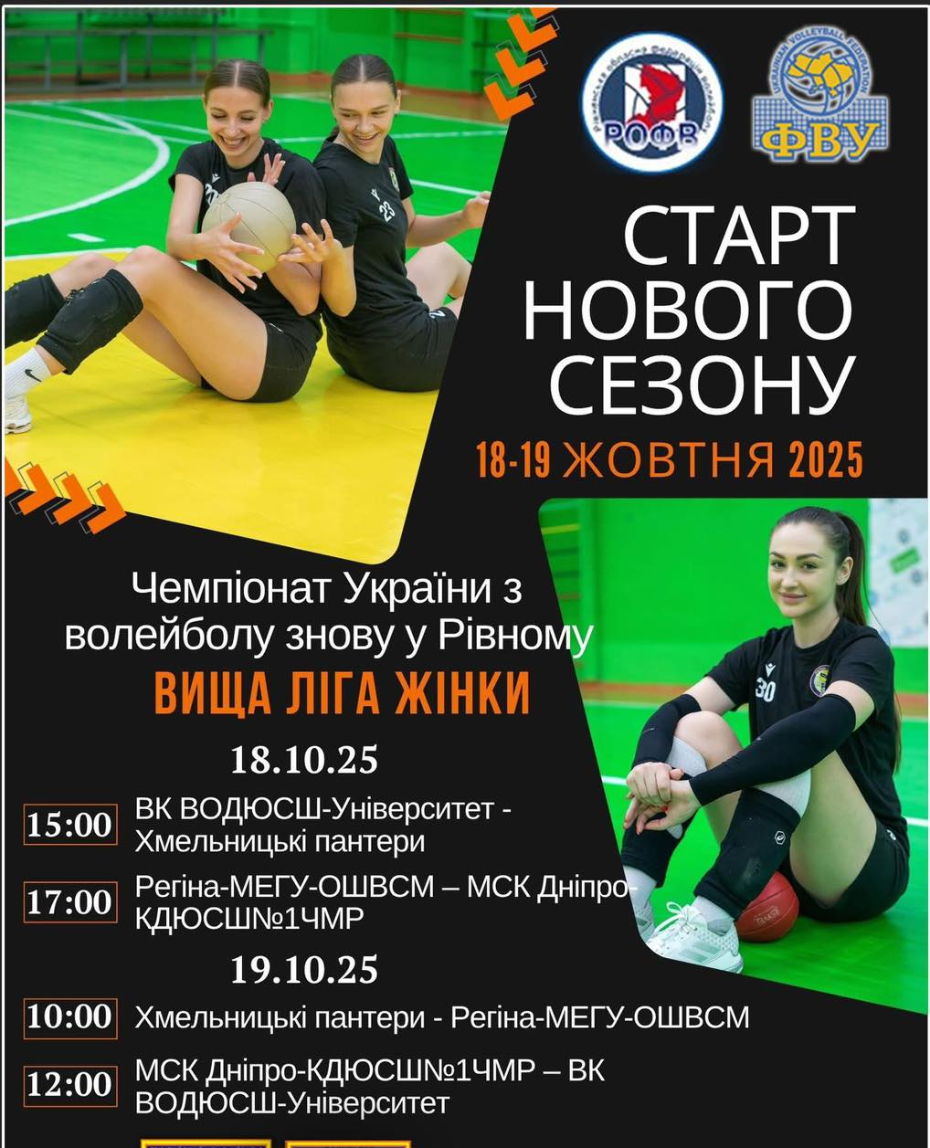 Цими вихідними, 19–20 жовтня, в обласному центрі відбудеться перший тур чемпіонату України з волейболу серед жіночих команд вищої ліги сезону 2025–2026.