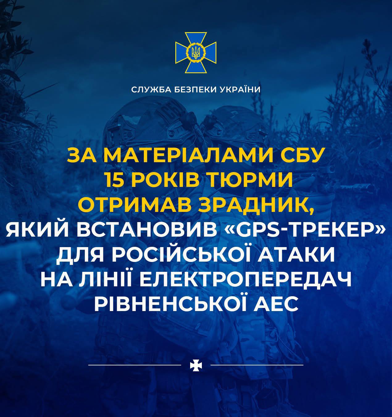 Суд призначив 15 років ув’язнення з конфіскацією майна агенту рф, який готував повітряну атаку по високовольтних лініях електропередач Рівненської атомної електростанції.
