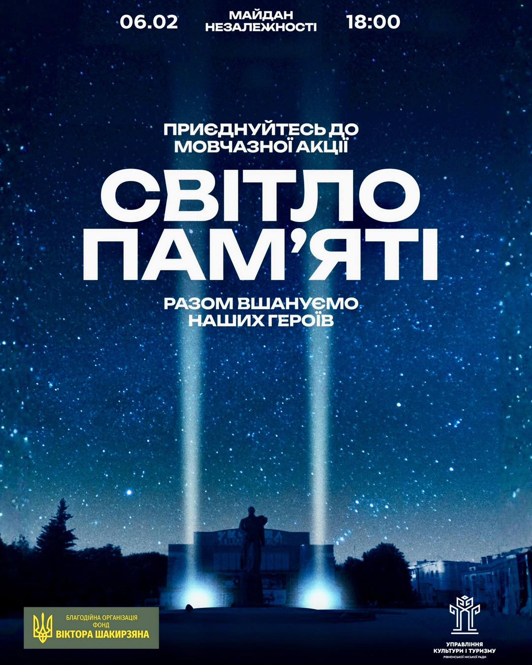 У небо здіймуться світлові промені як символ вічної вдячності та шани тим, хто віддав життя за свободу України.