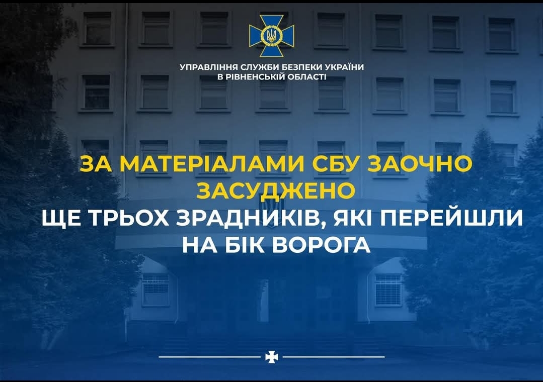 У Рівному за матеріалами Служби безпеки України заочно засуджено трьох осіб, які добровільно перейшли на бік держави-агресора та співпрацювали з окупаційною владою.