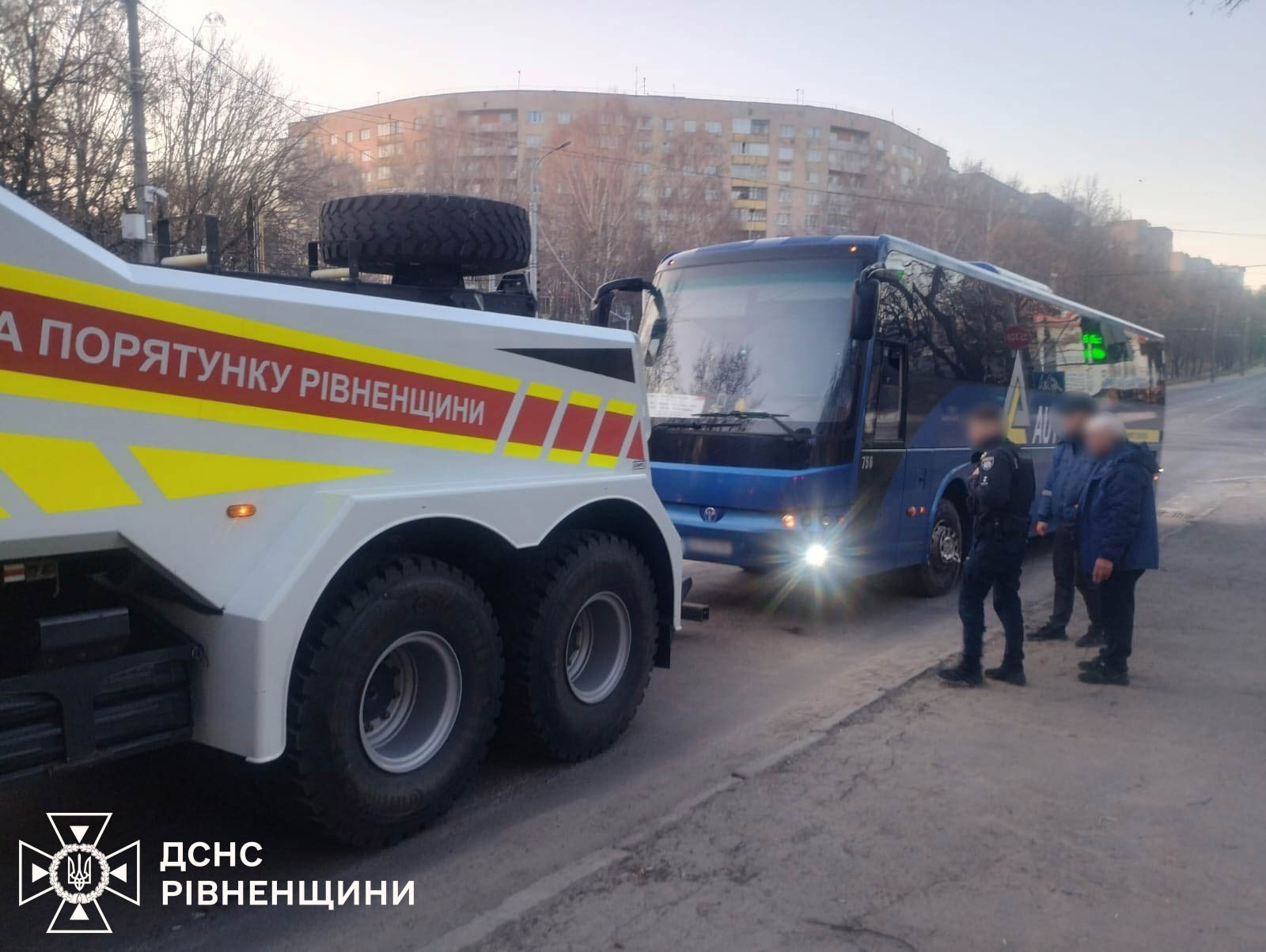 До ліквідації наслідків залучили рятувальників аварійно-рятувального загону спеціального призначення. За допомогою тягача Iveco Trakker, спільно з патрульною поліцією, вони відбуксирували несправний автобус, який перекривав рух.
